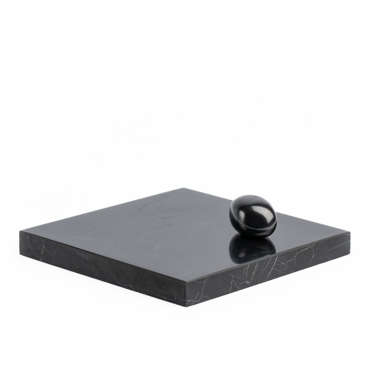 Decorative tiles made of polished shungite have a pleasant texture that soothes a person. Can be used for creative purposes, as a stand or as a paperweight.