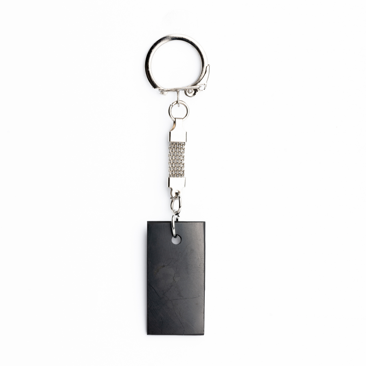 Keychain with natural shungite. The pleasant texture of the stone calms when touched, and the mineral itself protects against negative environmental influences, reduces the influence of surface radiation and electromagnetic radiation.
