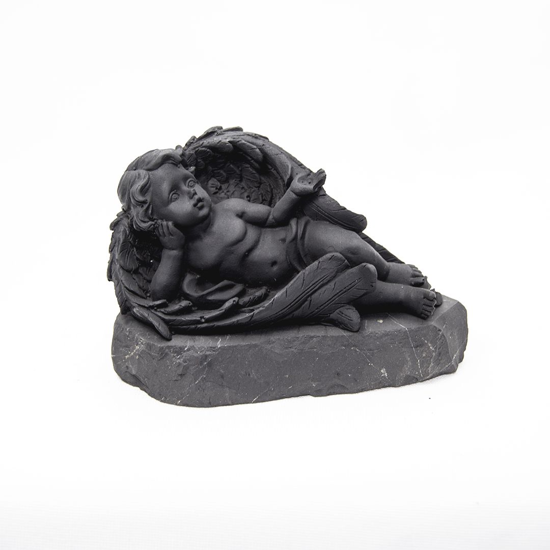 The figurine is cast, based on shungite powder (70% of the composition).Each figurine stands on a stand carved from a single piece of the mineral.Properties:Protection against electromagnetic radiation.Harmonization of space