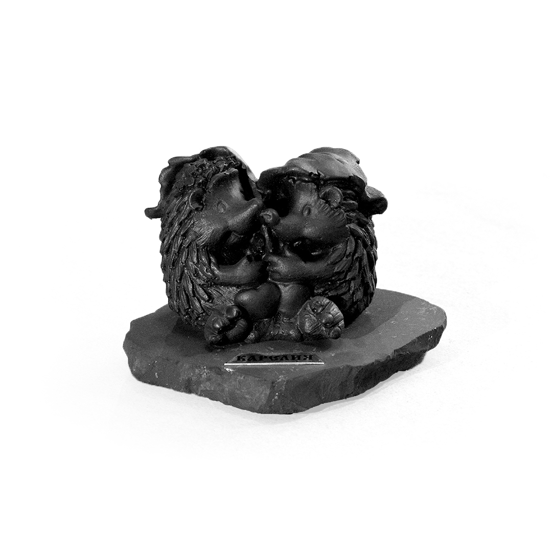 The figurine is cast, based on shungite powder (70% of the composition).Each figurine stands on a stand carved from a single piece of the mineral.Properties:.Protection against electromagnetic radiation.Harmonization of space
