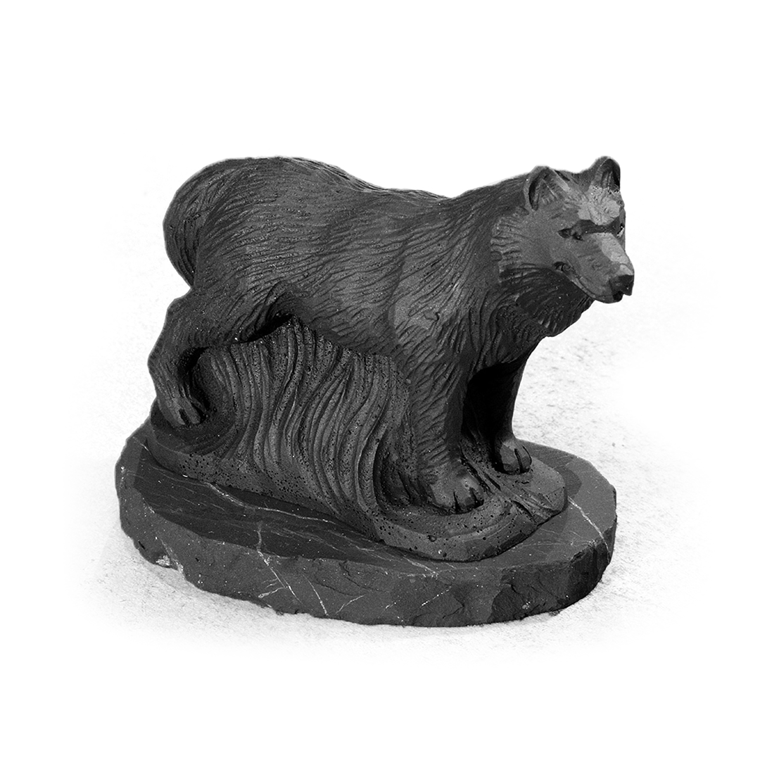 The figurine is cast, based on shungite powder (70% of the composition).Each figurine stands on a stand carved from a single piece of the mineral.Properties:Protection against electromagnetic radiation.Harmonization of space