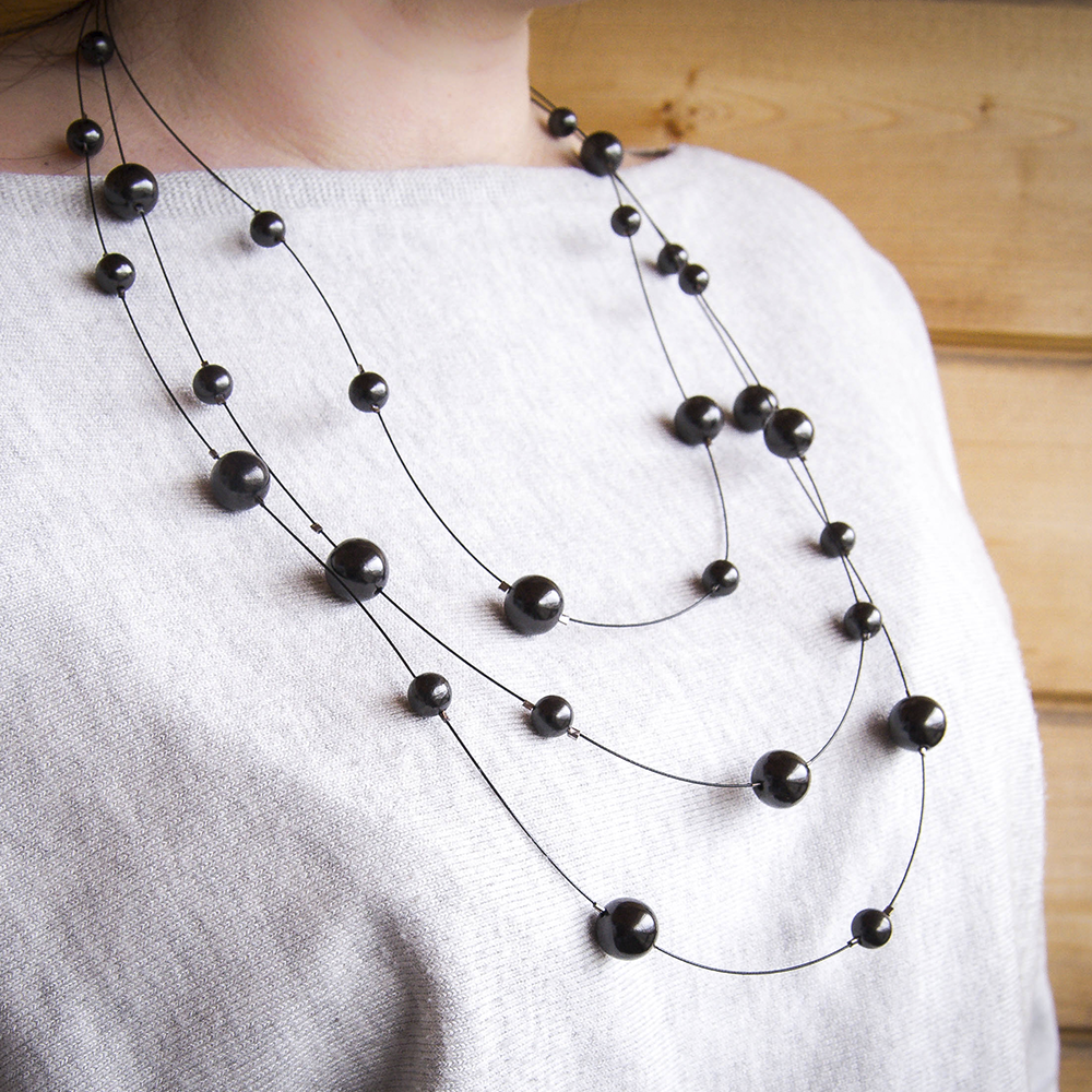 Shungite necklace has a positive effect on the body (especially on endocrine system), promote self-regulation and preservation of youth and beauty.Beads on a jewellery wire in 3 tiers. Length 60 and 70 and 80 cm.Diameter of beads 7-10 mm.All beads are made of natural Karelian shungite from the Zazhoginsky deposit.