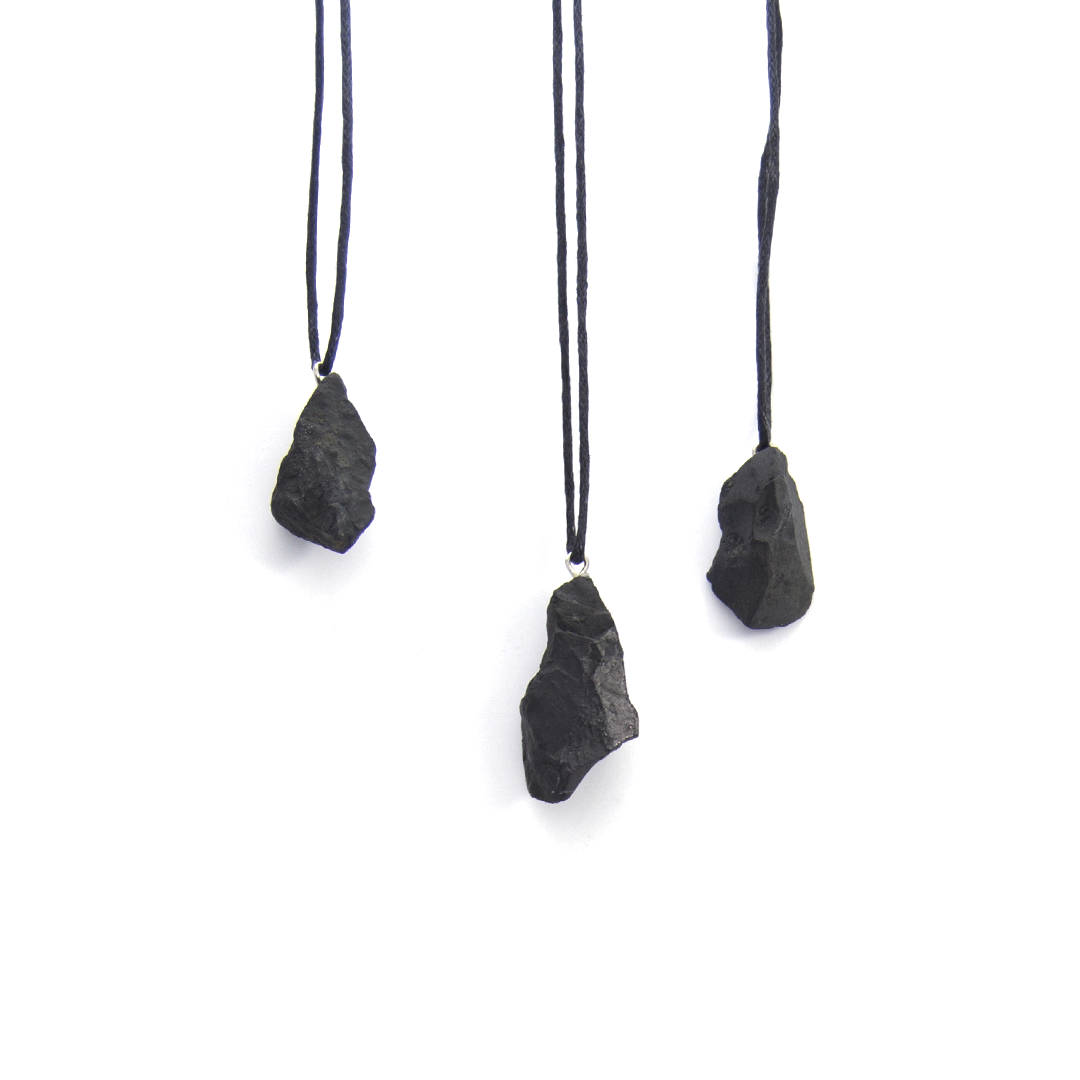 Shungite (crushed stone) pendant unpolished. Properties: Help the body to self-regulate,Restoring energy balance. Indications for wearing: Diseases of the thyroid gland,Vegeto-vascular dystonia,Decreased vitality.Waxed cord (80cm) included.