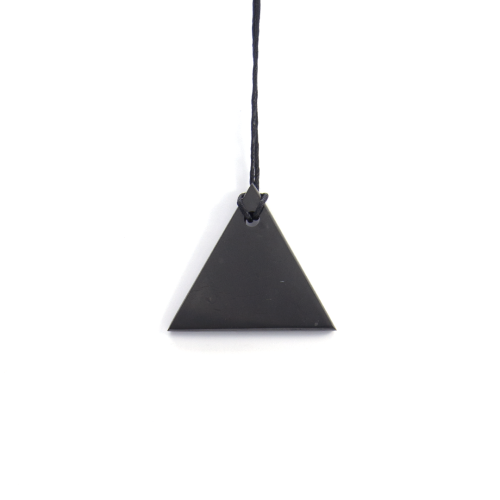 Shungite pendant in the shape of a triangle facing upwards, polished. Such a symbol is solar and carries the symbolism of life, fire, flame, heat, masculinity.Properties:Help the body to self-regulate,Restoring energy balance.Indications for wearing:Diseases of the thyroid gland,Vegeto-vascular dystonia,Decreased vitality.Waxed cord (80cm) included.