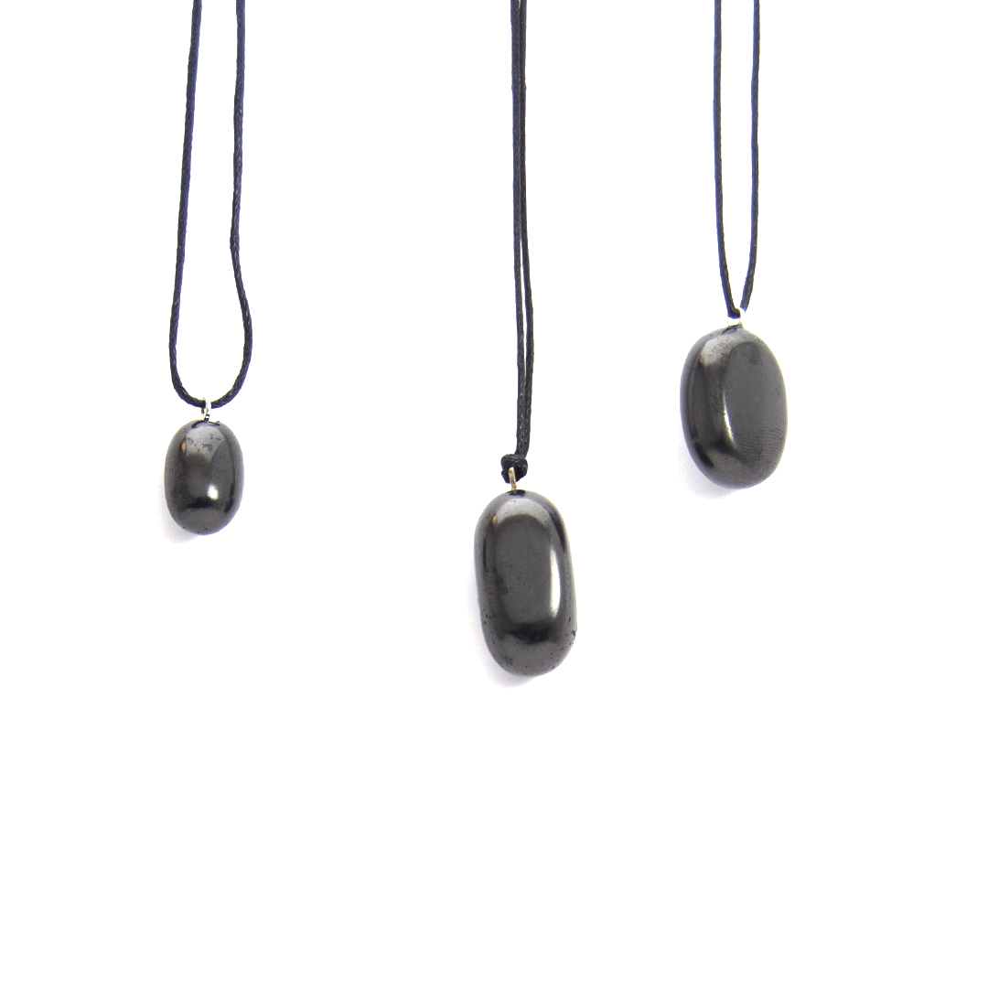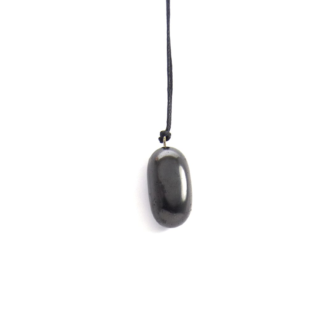 Shungite (crushed stone) pendant tumbling and polished. Properties:Help the body to self-regulate,Restoring energy balance. Indications for wearing: Diseases of the thyroid gland,Vegeto-vascular dystonia,Decreased vitality. Waxed cord (80cm) included.