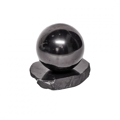 Polished shungite ball.The radius of action depends on the diameter of the ball, it is calculated based on the formula “1 cm of the diameter of the ball = 0.5 meter of the impact area”. Please note that a stand is included with the ball.Please select the required size before purchasing.The approximate radius of the ball is 25 cm - 37,5 meters