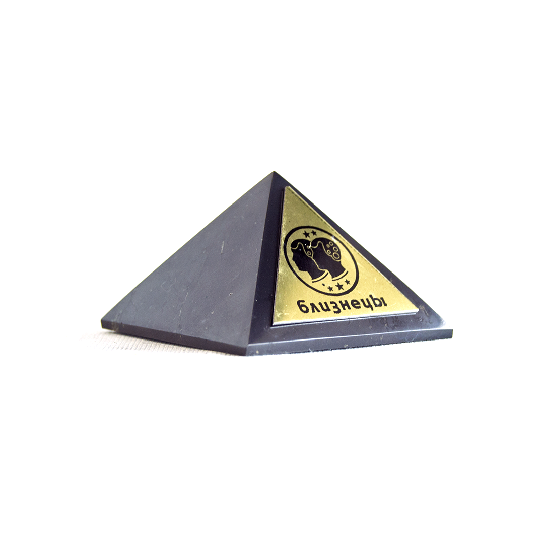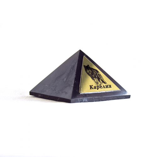 Polished shungite pyramid with nameplate.In the comments to the order, select the picture you like.The base of the pyramid - 5 cm.The radius of the pyramid is 5 meters.